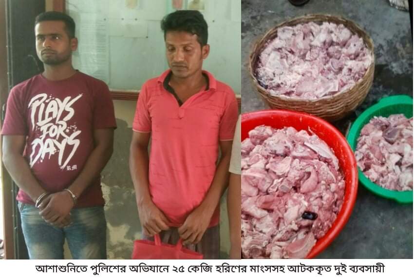 আশাশুনিতে পুলিশের অভিযানে ২৫ কেজি হরিণের মাংসসহ দুই ব‍্যবসায়ী আটক