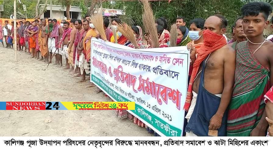 কালিগঞ্জে পূজা উদযাপন পরিষদের নেতৃবৃন্দের বিরুদ্ধে মানববন্ধন ও প্রতিবাদ সমাবেশ অনুষ্ঠিত ।