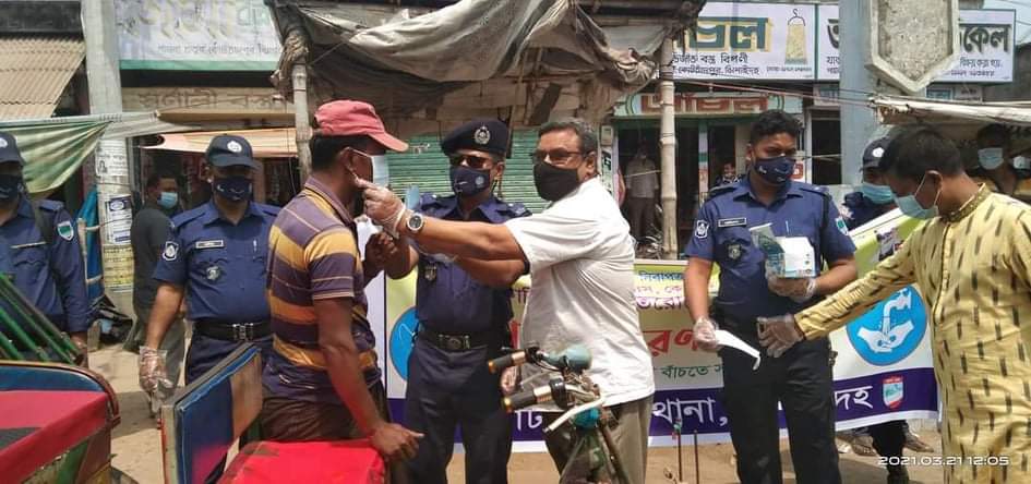 কোটচাঁদপুর মডেল থানার উদ্যোগে জনসাধারনের মাঝে ফ্রি মাস্ক বিতরণ
