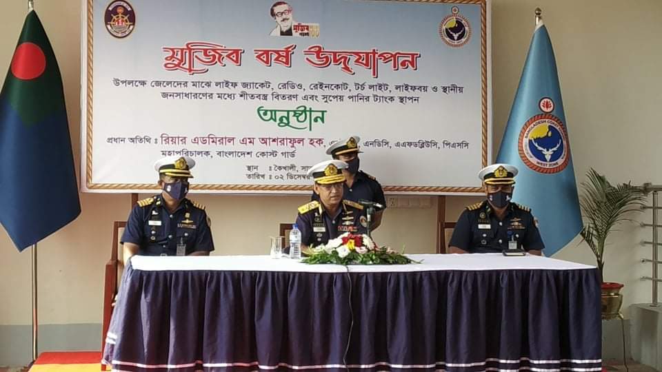 শ্যামনগর প্রতিনিধি ঃ মুজিব বর্ষ উপলক্ষ্যে সুন্দরবন সাতক্ষীরা রেঞ্জের জেলে বাওয়ালীদের মাঝে শীতবস্ত্র, লাইফ জ্যাকেট ও স্বাস্হ্য সুরক্ষা সামগ্রী বিতরণ করেছে বাংলাদেশ কোস্ট গার্ড। বুধবার দুপুরে শ্যামনগর উপজেলার কৈখালীতে প্রধান অতিথি হিসেবে উপস্হিত থেকে বাংলাদেশ কোস্ট গার্ডের মহাপরিচালক রিয়ার এডমিরাল এম. আশরাফুল হক জেলেদের মাঝে এসব উপকরণ সামগ্রী বিতরণ করেন।