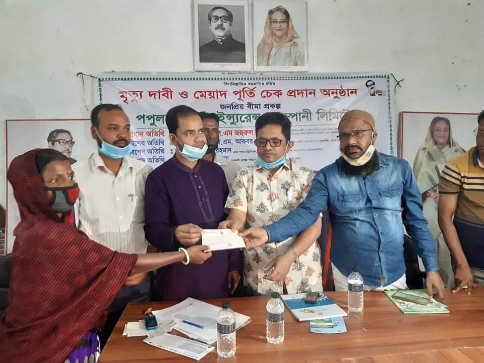 শ্যামনগরে জনপ্রিয় বীমা প্রকল্প পপুলার লাইফ ইন্সুরেন্স এর চেক বিতরণ