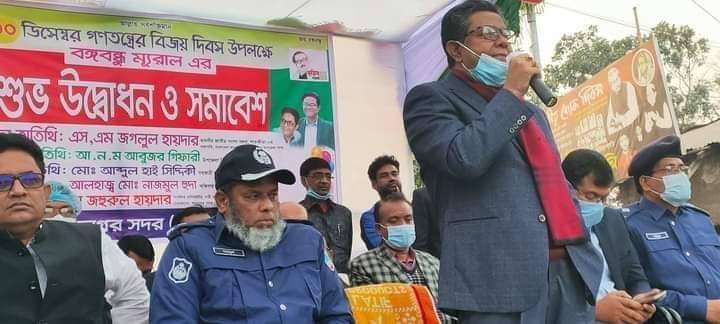 শ্যামনগর ব্যুরোঃ ৩০ ডিসেম্বর গণতন্ত্রের বিজয় দিবস উপলক্ষ্যে শ্যামনগরে বঙ্গবন্ধু ম্যুরাল এর শুভ উদ্বোধন ও এক বিশাল বিজয় সমাবেশ অনুষ্ঠিত হয়েছে। ৩০ ডিসেম্বর (বুধবার) বিকাল ৪টায় শ্যামনগর চৌরাস্তা মোড়ে সাতক্ষীরা নারী ও শিশু নির্যাতন দমন ট্রাইব্যুনাল এর বিশেষ পি.পি চেয়ারম্যান এ্যাডঃ এস এম জহুরুল হায়দার বাবুর সভাপতিত্বে অনুষ্ঠানে প্রধান অতিথি ছিলেন সাতক্ষীরা-৪ আসনের এমপি এস এম জগলুল হায়দার।