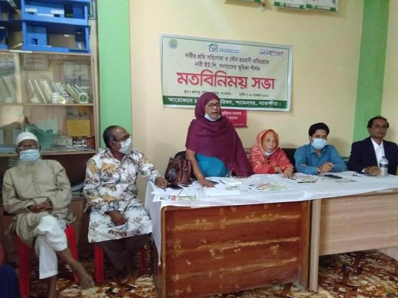 শ্যামনগর প্রতিনিধি : শ্যামনগরে জলবায়ু পরিষদের উদ্যোগে ৮ নভেম্বর ২০২০ তারিখে সকাল দশটায় শ্যামনগর উপজেলায় ১২টি ইউনিয়নের ১২ জন নারী ইউপি সদস্য প্রতিনিধিদের নিয়ে মতবিনিময় সভা অনুষ্ঠিত হয়েছে। সভায় সভাপতিত্ব করেন জাতীয় মহিলা সংস্থার শ্যামনগর সভাপতিও জলবায়ু পরিষদ সদস্য অধ্যাপিকা শাহনা হামিদ, প্রধান অতিথি হিসেবে উপস্থিত ছিলেন উপজেলা মহিলা ভাইস চেয়ারম্যান উপজেলা পরিষদ শ্যামনগর ও জেলা নারী উন্নয়ন ফোরামের সভাপতি খালেদা আইয়ুব ডলি। অতিথি হিসেবে উপস্থিত ছিলেন উপজেলা অন ষ্টাফ ক্রাইম সেল( ও সি সি) প্রণব বিশ্বাস। জলবায়ু পরিষদের সদস্য সচিব অধ্যক্ষ আশেক ই এলাহী জলবায়ু পরিষদের সদস্য ও সাংবাদিক রঞ্জিত বর্মন, জলবায়ু পরিষদ সদস্যও নকশী কাঁথা র নির্বাহী পরিচালক চন্দ্রিকা ব্যানার্জি, শ্যামনগর উপজেলা জাসদ সাবেক সভাপতি ও জলবায়ু পরিষদের সদস্য হারুন-অর-রশিদ, সাধারণ সম্পাদক কামরুজ্জামান, নাগরিক সংগঠন সিএসআরএল এর উদ্যোগে শ্যামনগরে যৌন হয়রানি প্রতিরোধে ইউপি সদস্যদের ভূমিকা শীর্ষক আলোচনায় প্রধান অতিথিসহ আলোচকরা বলেন করোণা পরিস্থিতিতে এলাকার মানুষ মধ্যে নারীর প্রতি সহিংসতা ও নির্যাতনের হার বেড়েছে। উপস্থিত ইউপি সদস্য ইউনিয়ন পরিষদের দায়িত্ব থেকে প্রতিনিয়ত নারীদের বিভিন্ন সমস্যা এবং নির্যাতনের বিষয়ে সহিংসতা প্রতিরোধে কাজ করে যাচ্ছে সেই তথ্যগুলো আরো সুসংগঠিতভাবে এলাকার সাধারণ মানুষের কাছে পৌঁছে দেওয়ার উদ্যোগ গ্রহণ করা হয়। নারী নির্যাতনের বিষয়ভিত্তিক সমাধানের উদ্যোগ গুলো তুলে গ্রুপ ওয়াকের মধ্যেমে আলোচনায় তুলে নিয়ে আসা হয় নিয়ে আসা হয়। সমন্বিতভাবে নারীর প্রতি সহিংসতা প্রতিরোধে ইউপি সদস্যর নারী প্রতিনিধিরা বেশি উদ্যোগ গ্রহণ করতে পারেন , সে ক্ষেত্রে ওয়ান স্টপ ক্রাইম সেলের প্রধান প্রণব বিশ্বাস বলেন আপনি ঘরে বসে তথ্য পাবেন একজন নারী নির্যাতিত হলে আমাদের হটলাইন নাম্বার ১০৯ ফোন দিতে পারবেন দ্রুত আমরা পদক্ষেপ নেওয়ার জন্য আপনাদের সেবায় বসে আছি। উপস্থিত ইউপি সদস্য মুন্সীগঞ্জে ইউনিয়নের সেলিনা সাঈদ, শ্যামনগর সদর ইউনিয়নের ইউপি সদস্য দেলোয়ারা বেগম, কাশিমাড়ী ইউনিয়ন এর রওশন আরা বিধি, বুড়িগোয়ালিনী ইউনিয়নের লক্ষ্মী রানী শীল, ঈশ্বরী পুর ইউনিয়নের হালিমা কামরুল, পদ্মপুকুর ইউনিয়নের জাহানারা খানম, ভূরুলিয়া ইউনিয়নের রহিমা আক্তার বক্তব্য রাখেন ও দলীয় আলোচনায় সকল ইউপি সদস্য এলাকায় নারী নির্যাতনের বিষয়গুলো তুলে ধরেন সমাধানের উদ্যোগে গুরুত্বপূর্ণ পদক্ষেপ নেওয়ার জন্য সরকারি কর্মকর্তা বেসরকারি এনজিও কর্মকর্তা দৃষ্টি আকর্ষণ করেন।