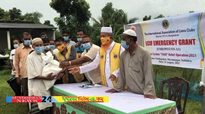 সাতক্ষীরার শ্যামনগরে ঘূর্ণিঝড় ইয়াস’র প্রভাবে ক্ষতিগ্রস্থ ও লকডাউনে কর্মহীন হয়ে পড়া অসহায় মানুষের মাঝে ত্রাণ বিতরণ করেছে লায়ন্স ক্লাব ইন্টারন্যাশনাল ৩১৫এ-১।