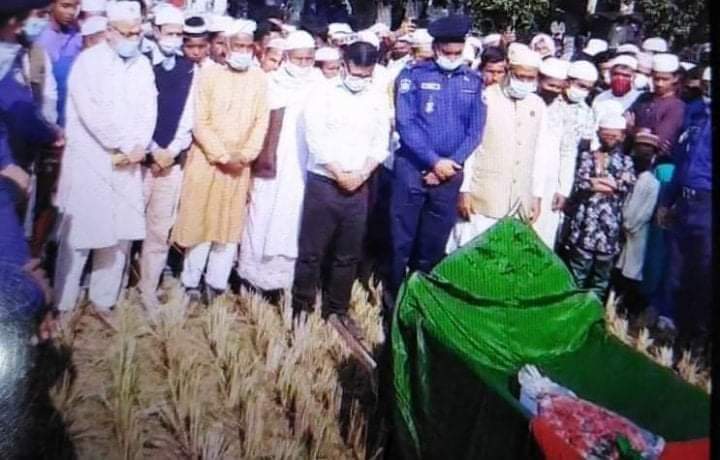 রোববার বেলা ২ টায় সাপাহার উপজেলার তিলনা ইউনিয়নের বাবুপুর গ্রামে নির্বাহী ম্যাজেষ্ট্রেট ও সহকারী কমিশনার (ভূমি) সোহরাব হোসেনের নেতৃত্বে নওগাঁ জেলা পুলিশের একটি চৌকস দল তাকে গার্ড অব অনার প্রদান করেন।