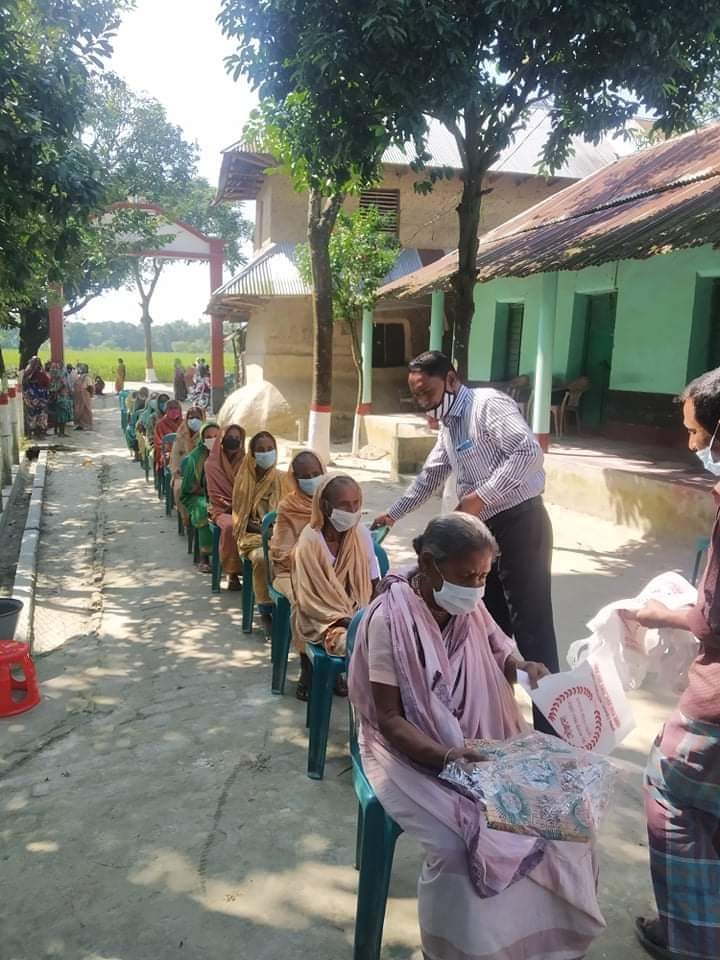সাপাহারে শারদীয় দূর্গাপূজা উপলক্ষে দুস্থদের মাঝে শাড়ী বিতরণ করলেন শিক্ষক সামসুল
