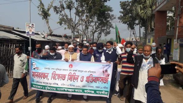 কালিগঞ্জ প্রতিনিধিঃবঙ্গবন্ধুর ভাস্কর্য অমর্যাদা ও ভাংচুর করার প্রতিবাদে কালিগঞ্জে মানববন্ধন, র্যালী ও বিক্ষোভ সমাবেশ অনুষ্ঠিত হয়েছে। সোমবার(৭ ডিসেম্বর) সকাল ১০ টায় উপজেলা মুক্তিযোদ্ধা সংসদ ও মুক্তিযোদ্ধা সন্তান কমান্ডের আয়োজনে উপজেলা
