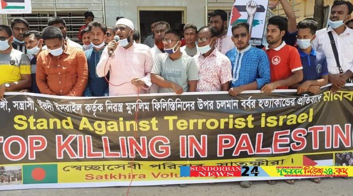 প্যালেস্টাইনের মুসলিমদের উপর ইজরায়েলের বর্বরতা ও গণহত্যার প্রতিবাদে বৃহস্পতিবার ২০ মে সকাল ১০ টায় সাতক্ষীরা জেলার সামাজিক স্বেচ্ছাসেবী সংগঠনের ব্যানারে শ্যামনগর উপজেলা প্রেসক্লাব চত্বরে এক মানববন্ধন ও প্রতিবাদ সমাবেশ অনুষ্ঠিত