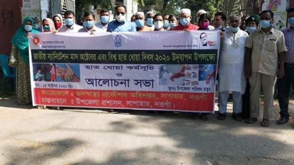 আবু বক্কার,সাপাহার (নওগাঁ) প্রতিনিধি: উন্নত স্যানিটেশন নিশ্চিত করি, করোনা ভাইরাস মুক্ত জীবন গড়ি” শ্লোগানকে সামনে রেখে নওগাঁর সাপাহারে জাতীয় স্যানিটেশন মাস অক্টোবর এবং বিশ্ব হাত ধোয়া দিবস উদযাপন করা হয়েছে।